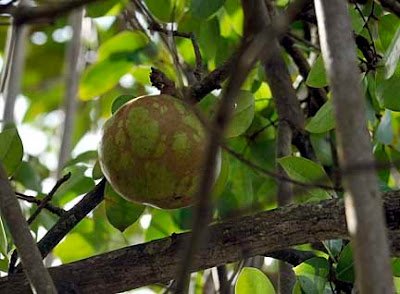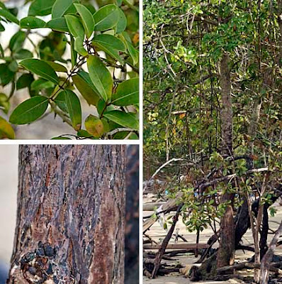 And big brown cannon-ball shaped fruits.But here's a strange Xylocarpus that was tucked among other mangrove trees on the sandy shore.