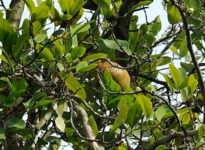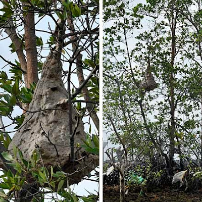 Right on the most seaward edge near the fence in a large Rhizophora tree, was another humungous wasp nest!! I could see some of the wasps lazily moving about near the nest. Wow, again I wished John was with us.