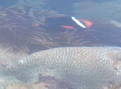 There were also several large healthy Brain corals (Family Mussidae), although some were an odd colour. These corals were badly affected during the coral bleaching event.