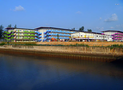 Very close to the shore, large colourful buildings seem close to completion. There is no signage at the front of the site so I'm not sure what these buildings are for.