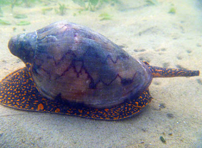 Chay Hoon (and probably others) did see the Baler snail (Melo melo) at Chek Jawa before. I've also seen this snail on Changi. Chay Hoon saw one at Chek Jawa eating a Noble volute (Cymbiola nobilis)! Today, several of us saw the beautiful Noble volute too.