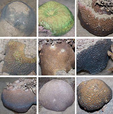 There were also many unbleached Crinkled sandpaper coral (Psammocora sp.), and many colonies of these bumpy corals which seem to be a kind of Pore hard coral (Porites sp.). There were also many boulder shaped Pore hard corals some of them were quite large.