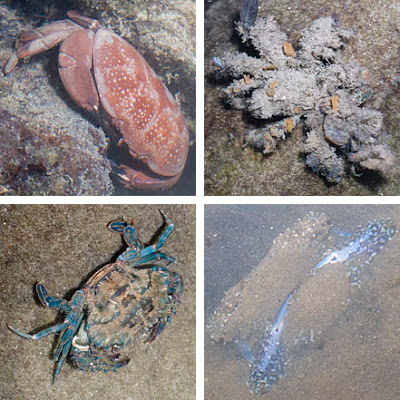 For the first time since the oil spill, I saw four Red egg crabs (Atergatis integerrimus)! I also saw one Velcro crab (Camposcia retusa). There were many Swimming crabs (Family Portunidae) of all kinds, I saw a pair of Flower crabs (Portunus pelagicus) and also many Spotted moon crabs (Ashtoret lunaris).