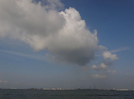 On the way out, once again, we noticed a big white 'cloud' of emissions from the petrochemical plants on Pulau Bukom.
