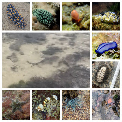 The rest of the team found lots of colourful slugs and other marine life. Kelvin got a video of the small sharks that started swimming in when the tide turned and once again found large chitons. We also noticed monkeys on this shore for the first time.