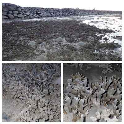 Corals have settled inside the Northern lagoon. The large patch of Branching montipora corals is mostly dead, but on the outer edge of the patch, about 10% of these corals were alive and not bleaching. Hopefully, these will recover soon. I sense far fewer corals here, and the area near the seawall opening was much sandier and bare.![]() |